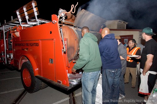 “We’re here to cook," said Firefighters Local 798 President Tom O'Connor. "Our new catering division is open to serve labor everywhere.” The firefighters converted the back of a fire engine into a barbeque grill. They served hotlinks, hamburgers and veggie burgers to the picketing Coalition workers.