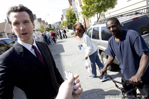 peeked out their balconies and windows, Mayor Gavin Newsom vowed