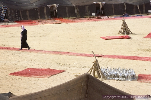 Sturdy waterproof tents, woven from camel and lambs hair, stood
