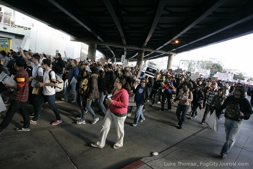 As many as ten thousand students, parents, school faculty and union members took to the streets of San Francisco yesterday as part of a coordinated day of action to protest cuts to education.