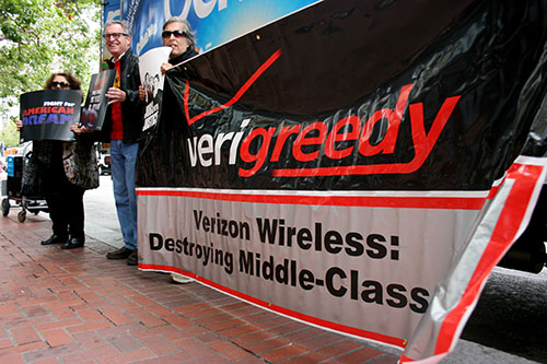 The day of action’s slogan is “Verizon is Verigreedy.”