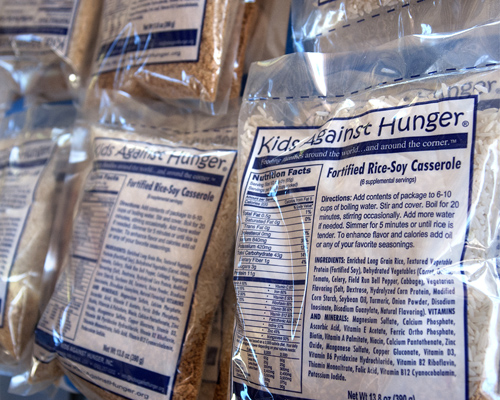 The food preparation event held at the Alameda County Fairgrounds was organized by the Pleasanton affiliate of Kids Against Hunger, a non-profit organization headquartered in Minnesota dedicated to eliminating global hunger.
