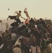 In November 2003, Sony Corporation released an advertisement called “Mountain.” In it, people all over a metropolitan area drop what they’re doing and rush towards the city center. There are so many of them that, as they pile atop each other, they begin to form a mountain that envelopes buildings and dwarfs skyscrapers. In the final shot, the camera zooms in on the top of the mountain as one person after another triumphantly reaches its zenith and then is shunted aside by the next victor, all set to Shirley Temple’s tune.