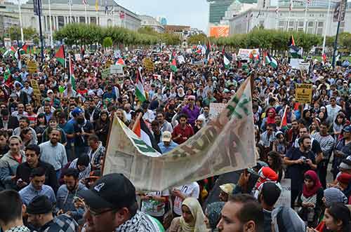 As many as 6,000 marched in San Francisco, 7/20/14, to protest Israel’s attacks on Gaza and the West Bank which has resulted in as many as 900 deaths. Photo by Gloria La Riva.